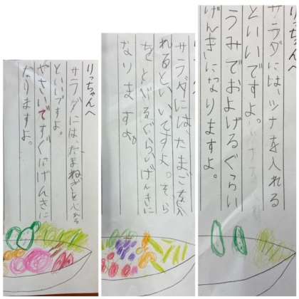 今日は、自分のおすすめの食材をりっちゃんに教えてあげるお手紙を書きました。