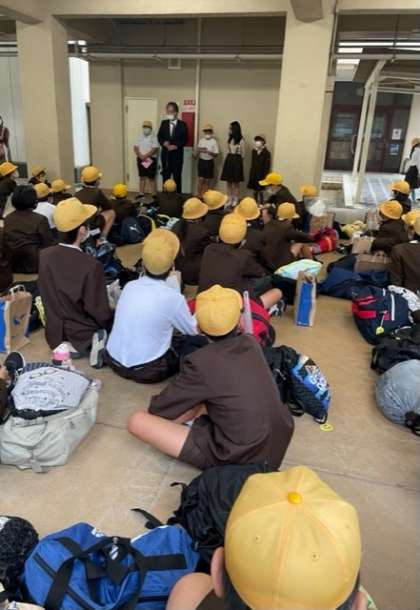 無事に学校に到着し、帰校式を行いました。