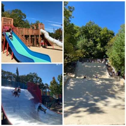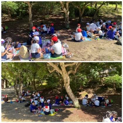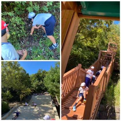 公園に着いてまずは、水車を見たり、展望台から景色を見たりしました。遊具のたくさんある公園では、大きな滑り台や長い滑り台を何回も滑っていました。学校の近くより自然が多く、虫探しやどんぐりを拾っている子もいて楽しそうでした♪また、お家でも話を聞いてあげてください。