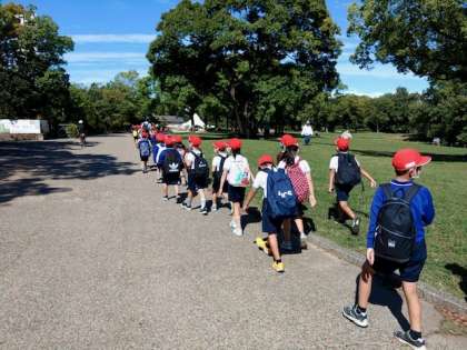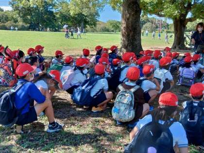 広い芝生で遠足ビンゴをしました。グループのみんなと協力して、課題をクリアし、たくさんビンゴをつくることができました。また、いいお天気の中で、みんなでおいしくお弁当をいただきました。