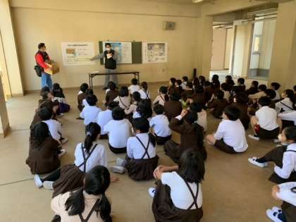 今日は、市役所の方々に来てもらい、備蓄倉庫の見学とアルファ化米体験の学習を行いました。社会科でも学習し、備蓄倉庫が校内のどこにあるかずっと気になっていた子どもたちですが、やっと見学することができました。「思ったより狭いな。」「狭いのに300食もの食料があるのか!」「ゴーグルもあるな〜。」と新しい発見がたくさんありました。