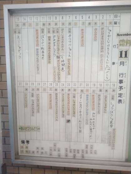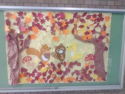 おはようございます。11月になり、玄関の貼り絵も変わりました。今日は代表委員会、国際クラブがあります。
