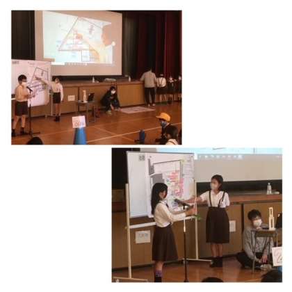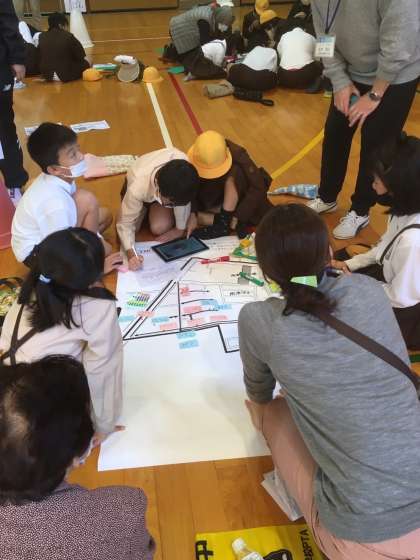 今回は、「危険・安全・役立つ」の3つのポイントを中心に写真を撮ったり、地域の防災リーダーの人に話を聞いたりしました。子どもたちの目線で発見したことは、模造紙にまとめて発表も行いました。これからどんな風に活用して、学習を進めていくか楽しみです!