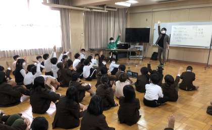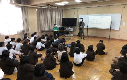 今日は総合的な学習の時間に、西成障害者会館で働いていた山脇さんに当時に経験された、貴重なお話をしていただきました。いろいろな人にとって住みやすい町づくりについて調べ学習をこれからしていきます。