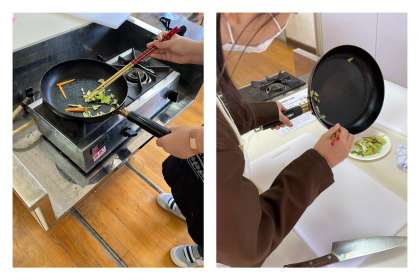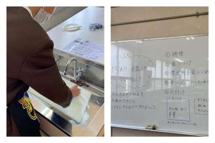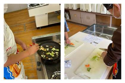 今日は1・2時間目に2組、3・4時間目に1組が調理実習がありました。「3色野菜いため」にチャレンジしました!にんじん、ピーマン、キャベツを切って、油で野菜を炒めました。調理から片付けまで、マナーを守って実習をすることができました!野菜が苦手な子もいましたが「塩コショウを多めにしたら食べれた!」「まあまあおいしかった!」と言っていました!