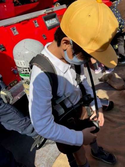 「こんな重いものをもって人を助けている消防士さんはすごい!」