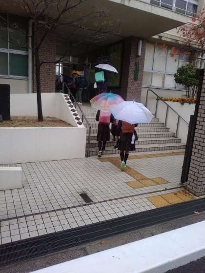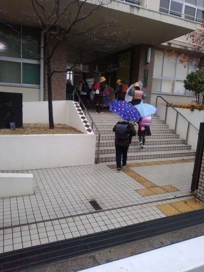 小雨の中の登校になりました。