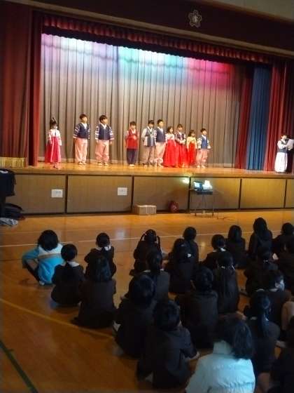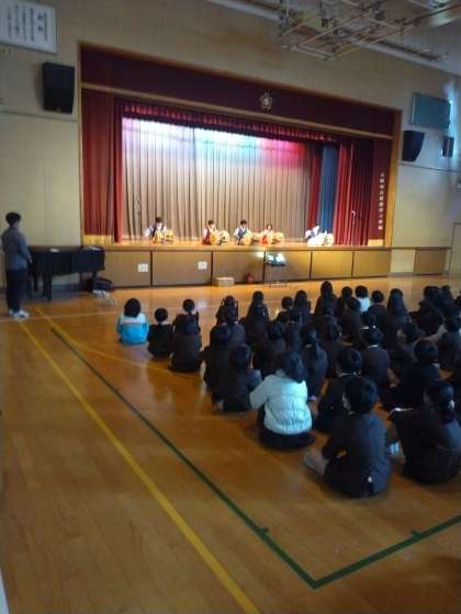 2年、4年、6年生に向けて、スポーツ、音楽や衣装などの発表がありました。