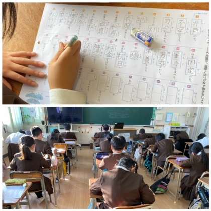 今日、国語の時間に漢字のまとめテストをおこないました!2学期に習った漢字50問テストです。自主学習で復習してきた子は自信満々で頑張っていました。時間ギリギリギリまであきらめず少しでも良い点を取ろうと一生懸命でした。