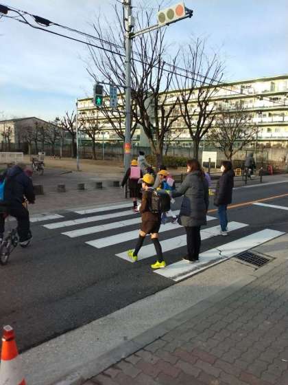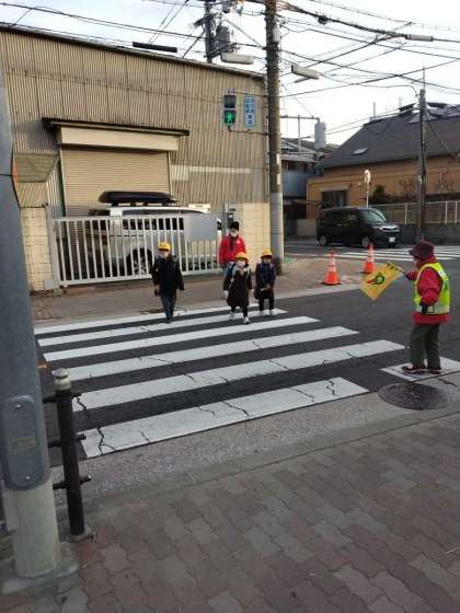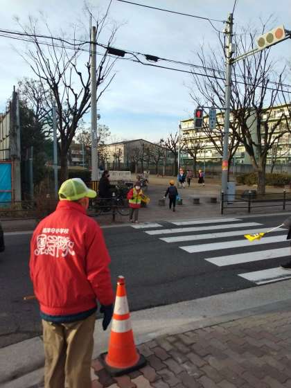 朝早くからPTAや南寿会など地域のみなさんに登校の見守りをしていただいてます。