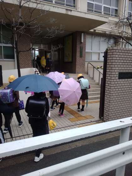 小雨の中の登校になりました。