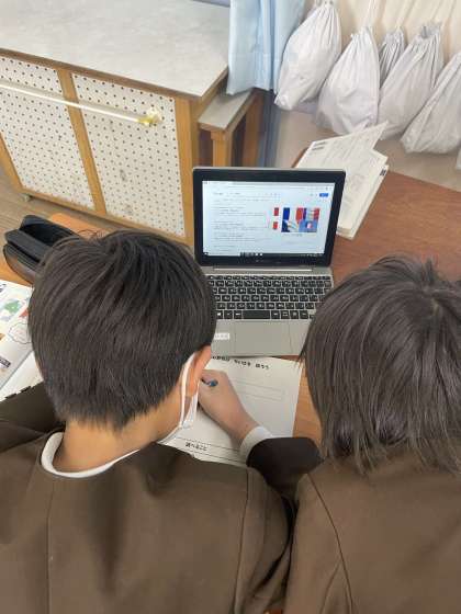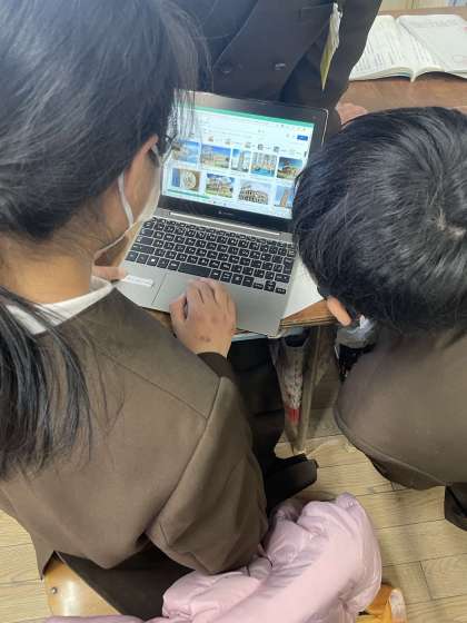 各グループが調べたい国を決め、その国の特産品であったり、暮らしであったりをパソコンを使って調べています。調べていくうちに色々なことがわかってきましたね。これからは調べたことを要約し、発表する予定です。