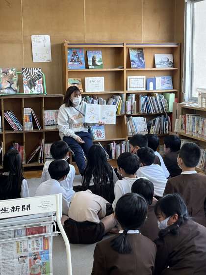 今年度も残りわずかとなった図書の時間に、子どもたちは担任の先生から図書の読み聞かせをしてもらっていました。どの子も先生と過ごせる残りの時間を惜しむかのように、集中して話に聞き入っている姿が印象的でした。