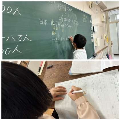算数科では「大きい数」の学習をしています。3年生よりも大きな数に悪戦苦闘しながら取り組んでいます。
