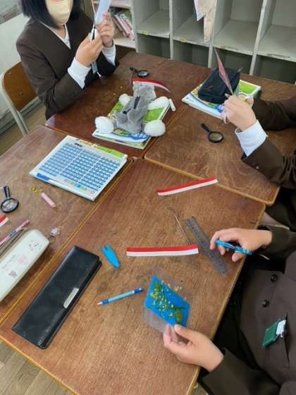 今日はそのアブラナを使って栞作りをしました!個性が光る、素敵な栞ができていました。