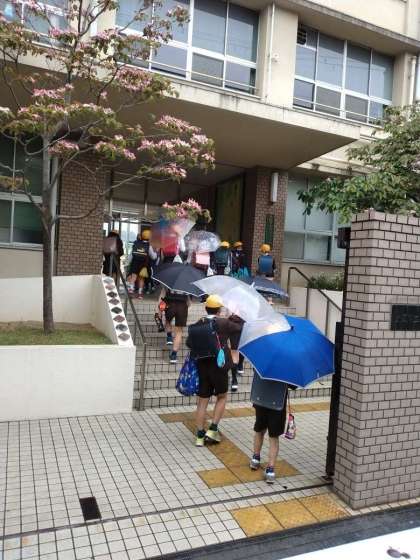 今日は小雨の中の登校になりました、