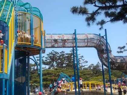 公園の遊具で遊んでいます。