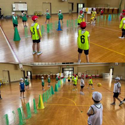 今では、練習で学んだことを生かして試合に取り組んでいます。それぞれのグループが「もう少し!」や「がんばろう!」など励まし合ったり、助け合ったりしながら頑張る姿が見られました。これから何度も何度も試合を重ねることで上手くなっていくと思います♪