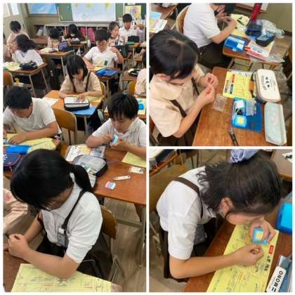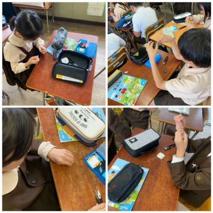 今日の家庭科は、「玉留め・玉結び」の練習をしました。