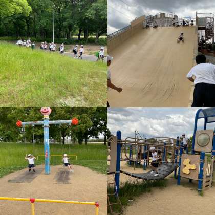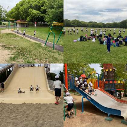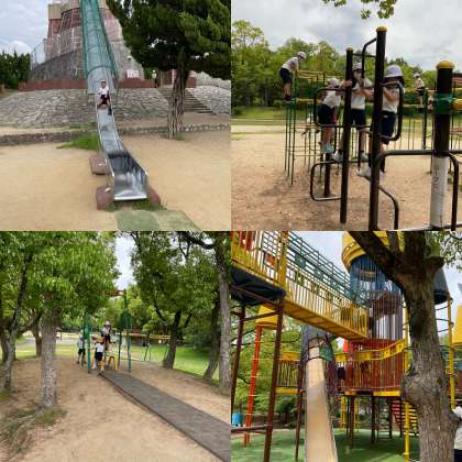 最後は冒険ランドに行きました。そこには、とても大きなすべり台や木製の遊具などがあり子どもたちは大興奮!みんな笑顔で楽しそうに遊んでいました。