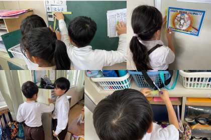 算数科「長さの単位」の学習では、cmの学習をしました!予想がとても当たっていたようで、大喜びでした。長さを測る学習が楽しかったのか、休み時間も一生懸命測っていましたよ ^^