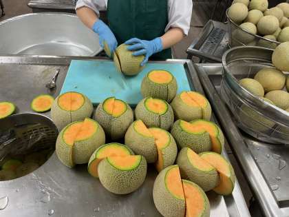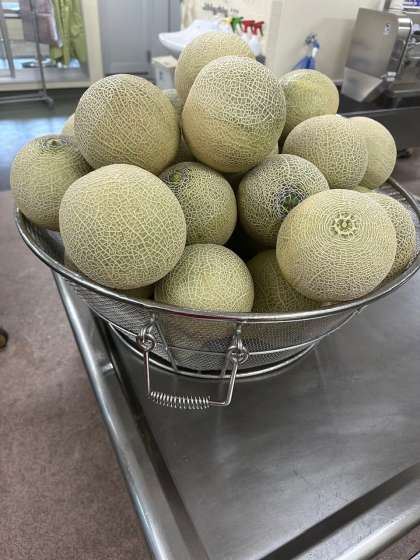 今日の献立のクインシーメロンは、年に一回登場します。中の身はとても綺麗なオレンジ色で、ジューシーでとてもおいしい一品でした。
