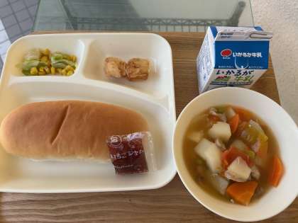 今日の献立のいかてんぷらは、なたね油でからりと揚げられていて、身は柔らかくとてもおいしい一品でした。