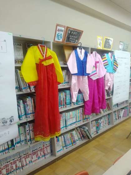 韓国、朝鮮の衣装や遊びなどを体験し、学びます。