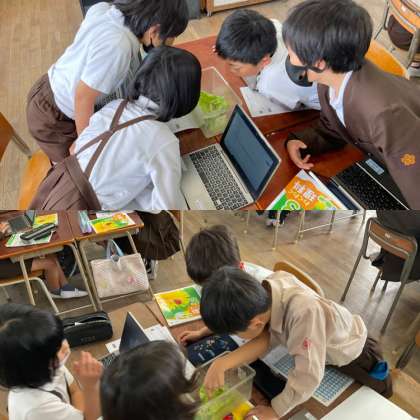 3年生の理科「チョウを育てよう」の学習では、モンシロチョウの育ち方や体のつくりを学習しています。実際に、それぞれの学級からモンシロチョウのたまを育てました。子どもたちはたまごからチョウになるまで、どのように育っていくのか観察しながら、気付いたことや思ったことを話し合ったり、ノートにまとめたりしました。これからは、チョウのせい虫の体のつくりについて学んでいきます♪