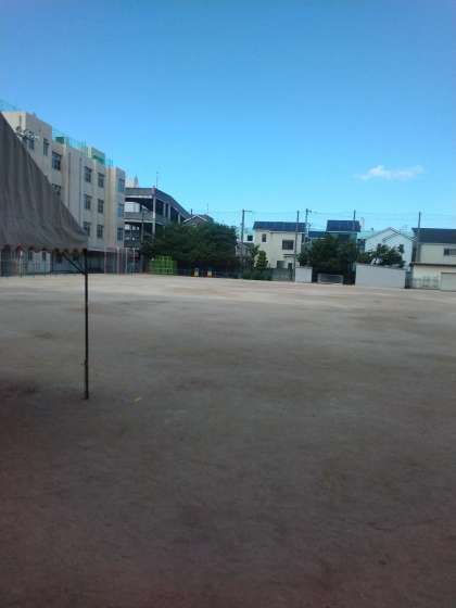 朝の校庭はセミの鳴き声だけが聞こえます。