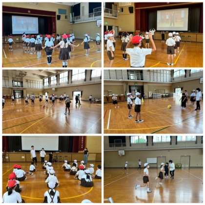 初めにみんなでダンスをして、転がしドッジをしたり、ふえおにをしたり、みんなでできる遊びをしました。初めてのダンスに南津守の4年生は恥ずかしそうにしていましたが、前で元気いっぱい踊っている支援学校のお友達を見て、負けずに頑張っていました^^