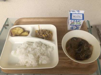 今日の献立のマーボーなすは、牛ひき肉、豚ひき肉、たまねぎ、なす、にんじん、ピーマン、しょうがが入っており、ボリュームがあります。素材の味が合わさって、とてもおいしい一品でした。