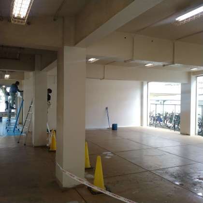 ピロティの塗装を進めています。どんどん綺麗になってきました。