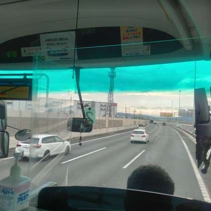 バスに乗車して、無事出発しました。渋滞も無く順調です。