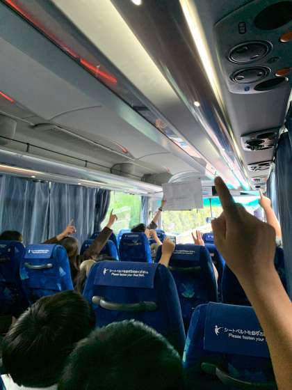 バスではゲーム大会で盛り上がってます。