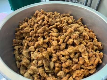 今日の献立のみそカツは、手作りのフライです。豚肉に衣をつけて油で揚げ、八丁みそと赤みそを合わせたみそダレをかけています。カツとタレの相性がとても良く、ごはんによく合うとてもおいしい一品でした。
