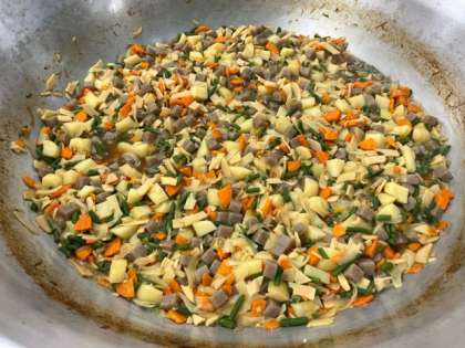 じゃがいもと野菜の煮ものは、じゃがいも、こんにゃく、たまねぎ、たけのこ、にんじん、さんどまめが入った具沢山の煮ものです。素材の味とだしの味があっていて、こちらもとてもおいしい一品でした。