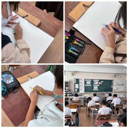 4年生の図画工作科では彫刻刀の使い方を学習しています。4年生で初めて使う彫刻刀ですので、けがをしないように持ち方・使い方をしっかり学習しています!