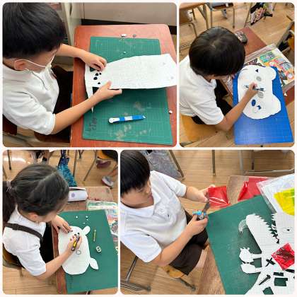 2年生の図画工作科「ひかりのプレゼント」の学習では、光を通す材料を使って、好きな形や色を映し出し、様々な見え方や感じ方を楽しんでいます!