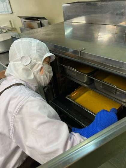かぼちゃういろうは、ペーストのかぼちゃ、上新粉、砂糖、水を合わせ、焼物機で蒸して作る和風のデザートです。優しい甘みがとてもおいしい一品でした。