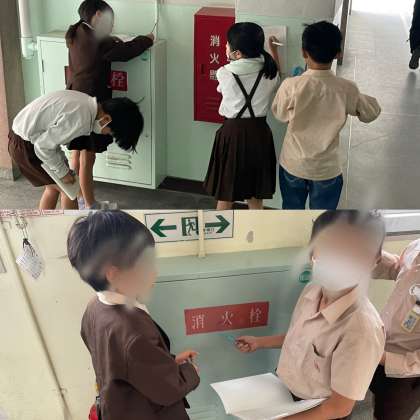 今回は、私たちの学校にはどのような火災設備があるのかについて学習しました。子どもたちは、学校には防火扉や消化器があるのは知っていましたが、「見たことはあるけど、どれぐらいあるのか知らない」「どこにあるかはっきりわからない」ということで校内を調べに行きました!よく気にして見てみると教室の前には必ず防火用バケツがあったり、各階に消火栓が必ずあるなど、たくさんのことに気が付きましたね。また、どうして消防設備が学校にたくさんあるのかについても考えました。これからは「まち」に焦点を当てて学習していきます!