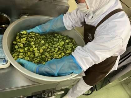 きゅうりのピリ辛あえは、きゅうりを焼物機で蒸し、砂糖、米酢、うすくちしょうゆ、ラー油で作ったタレをかけあえています。中華丼との相性がよくさっぱりとした味わいで、こちらもとてもおいしい一品でした。