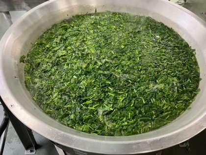 ほうれんそうのごまあえは、ゆでたほうれんそうに、すりごま、砂糖、うすくちしょうゆで作ったタレをかけ、いりごまをふり、あえています。こちらもとてもおいしい一品でした。
