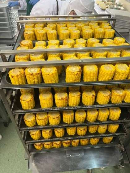 焼きとうもろこしは、カットコーンを焼物機で蒸し焼きにしています。甘味がギュッと詰まった、こちらもおいしい一品でした。