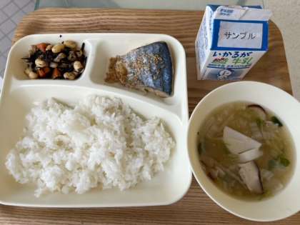 今日は健康的な食生活を送るために必要とされる食材である『まごわやさしい(豆・ごま・わかめなどの海そう・野菜・魚・しいたけなどのきのこ・いも)』を取り入れた献立の組み合わせになっています。