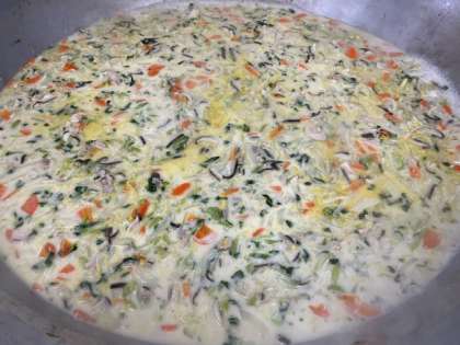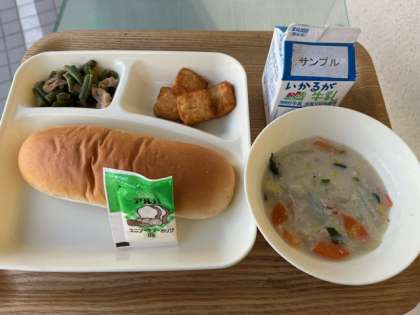 今日の献立のはくさいのクリーム煮は、鶏肉、はくさい、たまねぎ、チンゲンサイ、にんじん、しいたけが入った、中華風のクリーム煮になります。野菜だけで100g入っていて、とても具沢山のクリーム煮です。とてもおいしい一品でした。