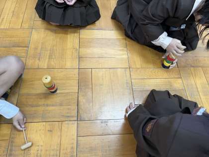 1年生は、生活科でいろいろな昔遊びを体験しています。