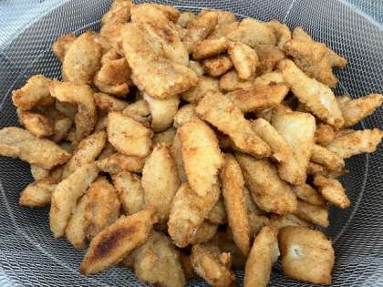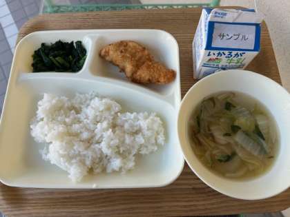 今日の献立のたらフライは、衣はサクッと、中はふんわりとあがりとてもおいしい一品でした。