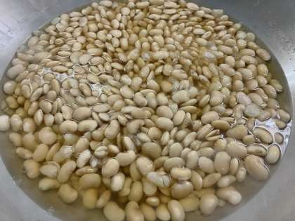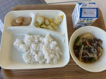白花豆の煮ものは、乾物の白花豆を熱湯に浸してもどし、弱火で柔らかくなるまでじっくりと煮ています。白花豆は、鉄や食物繊維が多く含まれており、児童のみなさんにしっかりと食べてもらいたい食品です。苦手な人もいましたが、残さずにおいしく食べる児童の皆さんもたくさんいました。