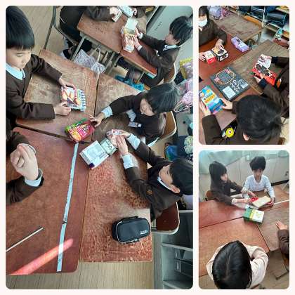 色々な箱を持ってきていただき、ありがとうございました!子どもたちはこの箱を使って面が6つあることや面は長方形や正方形になっていることを班で協力しながら考えました。今日は紙にうつしとり、実際にうつしとった箱と同じ箱を自分たちで作りました!とてもがんばっていました(^^)